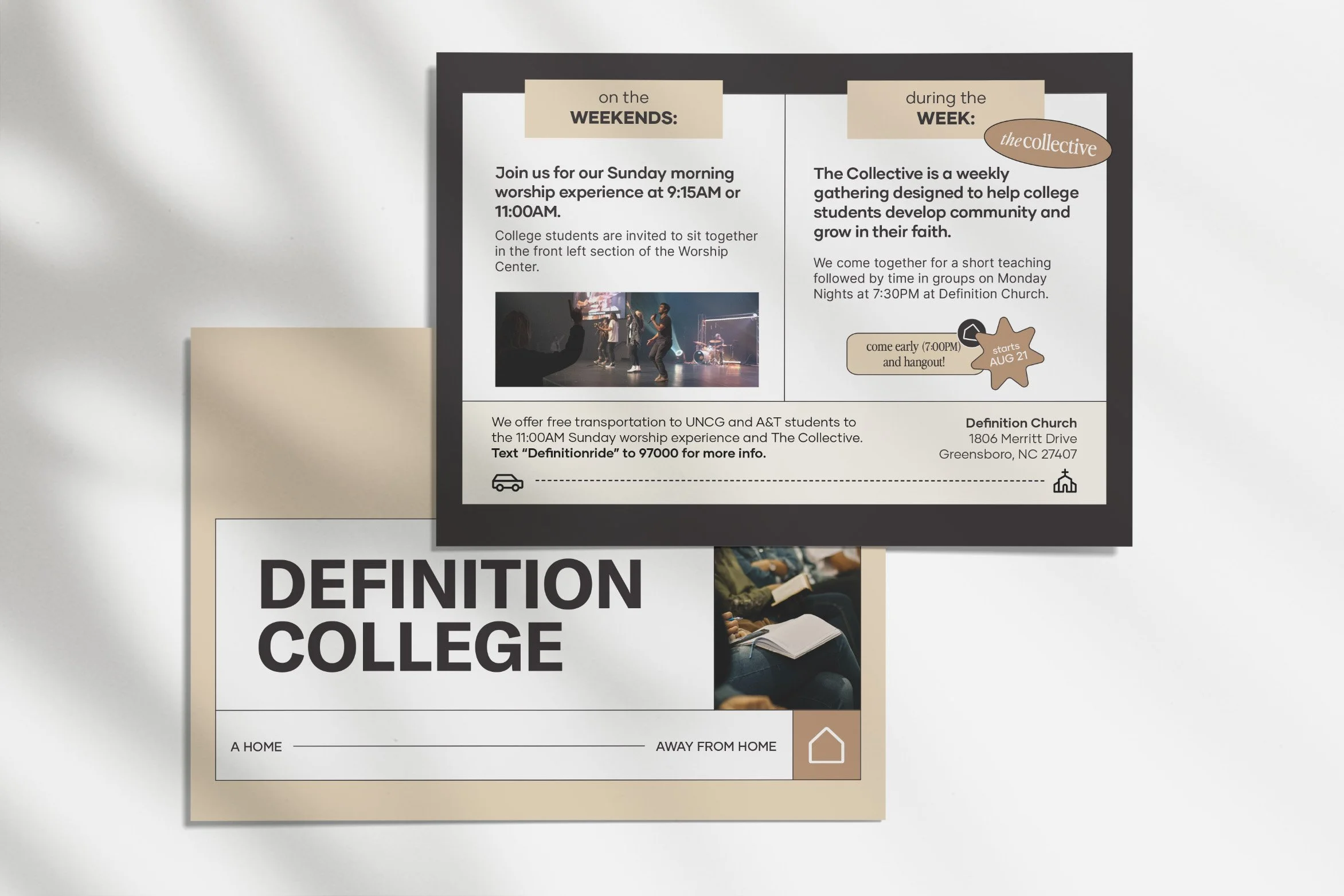 In the summer of 2023, our church transitioned its young adult ministry into a college ministry, creating the need for a clear visual identity that could stand apart from the churchās primary branding while still feeling connected to it. The final direction centered on a modern, type-driven aesthetic: clean, bold, and designed to resonate with a college audience.